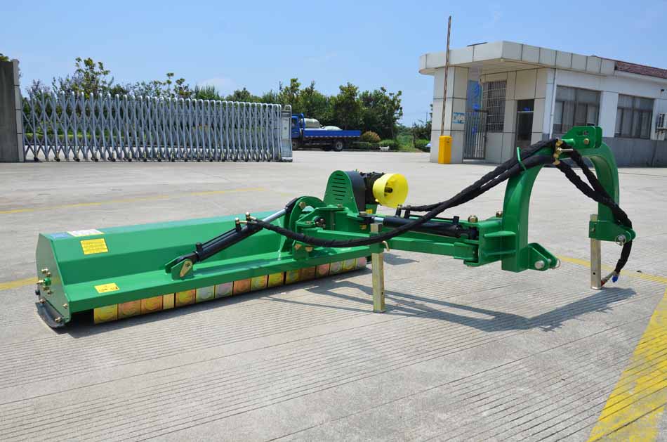 Verger flail mulchers are Super Heavy Duty Mowers designed with heavy cutting blades that can chop heavy brush including grasses, debris, sticks, vines, branches, and other wooded materials up to 2” in diameter. The mower head is attached to a hydraulic arm allowing you to swing the mulcher beyond your tractors wheels. The head may be pivoted hydraulically up to 90 degrees for hedge or hillside work or down 60 degrees for ditch or bank work. Connect it to our optional 4-way hydraulic control valve with a hydraulic float and the mulcher will follow the contours of the terrain.A flail mower doesn’t throw grass, instead it cuts finely and leaves the cuttings on the ground where it was cut making it an excellent choice for those places where you could cause damage by throwing debris. Highway mowing and park maintenance often use flail mowers because they are less likely to throw objects during cutting.