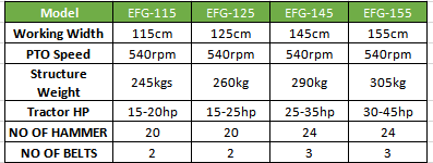 The EFG Series (Medium Duty) Flail Mower is an option if you are working on grass or brush. Ideal for an orchar,d nursery, vineyar,d in the greenhouse or for gardening. With its fast blade tip speed and interchangeable blades it is perfect for your groundskeeping tasks. By putting on the Grass Mulching Blades you can maintain the grass area around your home, plus cut and mulch small twigs. If you need to maintain more dense areas, install the Hammer Blades and you will be able to cut and mulch wooded material up to 2 inches in diameter. This model is great for acreage of 15 or less. Flail Mowers are useful for jobs where you are cutting grass on uneven groun,d high grass, weeds, brush, and wooded material. A flail mower doesn’t throw grass, instead it cuts finely and leaves the cuttings on the ground where it was cut making it an excellent choice for those places where you could cause damage by throwing debris. Highway mowing and park maintenance often use flail mowers because they are less likely to throw objects during cutting.