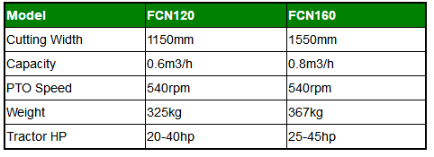 The FCN Series are standard duty flail mowers fitted with a hydraulic catcher for gathering mulched materials for easy relocation~High power 50hp gear box~ Height adjustable pivoting wheels for various cutting height~ Safety flaps~ Extra strong and designed with safety in mind~ Support legs for storage~ Solid hitch~ Steel hammer cutting blades.