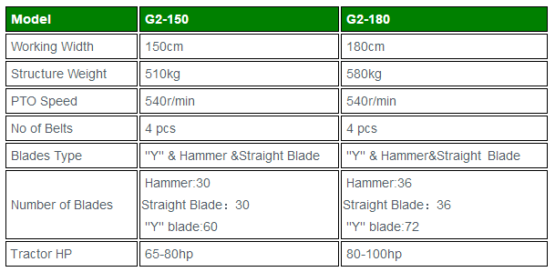 G2 mulcher has two blade axles, one of them equips grass ‘Y’ blade, another one equips hammer. G2 is a mulcher perfect for forestry or orchard areas. It cuts grass and little branches at the same time.
