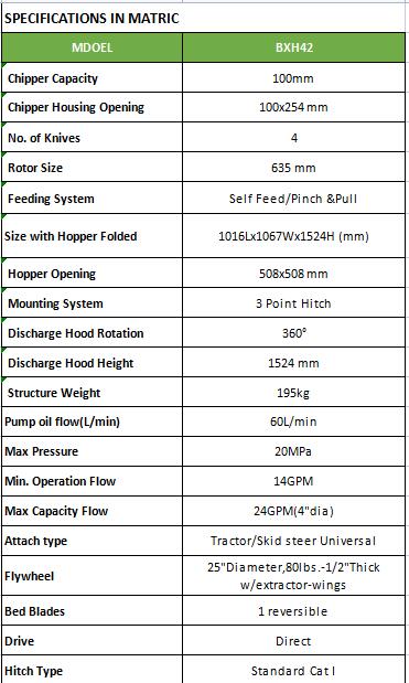 Chip brush, branches and leaves into perfect-size chips for groundcover on pathways or in flower beds with the Farmer Helper Skid Steer attach wood chipper. Perfect for woodlot owners, arborists, and municipalities.Air intake vents maximize blowing force to power the chips out of the chute up to 20 feet.Features a twig breaker to move long material through the rotor compartment, and a 60″ discharge chute with a 360 rotation.Adjustable deflector for accurate placement of wood chips.Hopper easily folds up making it easy to travel on narrow trails, transport and store.Comes complete with hoses and Standard couplers. (No exchange available)Standard-flow, chips branches up to 4″ in diameter into valuable wood chips.This easy to use attachment features a 20″ x 20″ self-feeding hopper opening to handle large, awkward size branches up to 4″ in diameter, and angles brush against the blades as it pulls material into the chipper.The 25″ rotor features 4 hardened-steel reversible chipping blades places at 90 degrees to each other to cut, shear and shred the wood as it moves through the machine.One of the great things about owning skid steer wood chippers is that you can reach many areas that you may never be able to reach with a regular chipper.The Farmer-Helper Wood Chipper for skid steers make nice uniform wood chips that can be used for landscaping, animal bedding, or mulch. The Farmer-Helper Wood Chipper is effective on both softwood and hardwoods both green or seasoned. It is great for cleaning up logging sites, orchards and gardens.When you need a professional wood chipper that will last and last then you need to look into what we have to offer.The versatility of our Skid Steer Mounted wood chipper is unsurpassed. The chipper can be placed in almost any location. The chipping disk is hydraulically powered from your skid steer loader’s hydraulic lines to your auxiliary couplers, start your machine and turn on the flow. The pressure and flow of your machine will power the chipper.