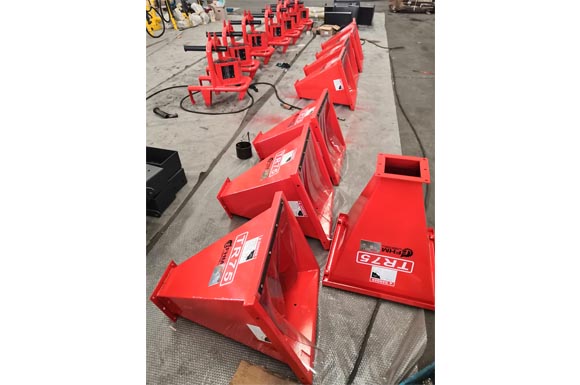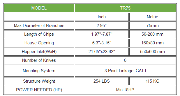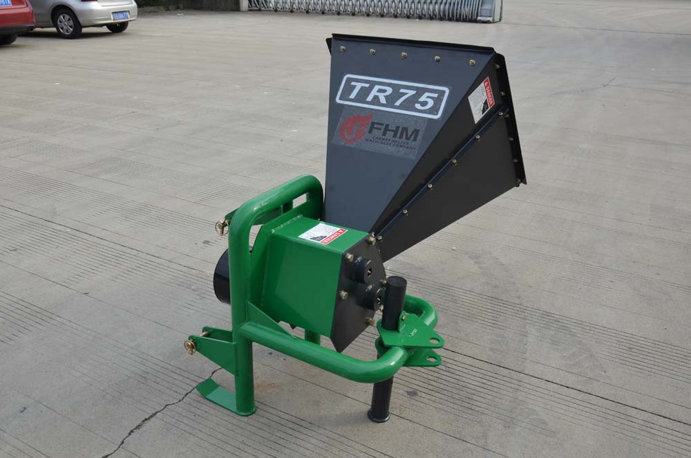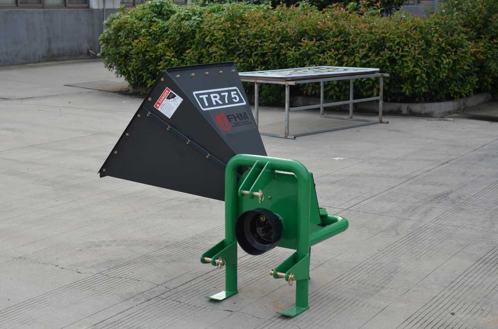 The TR75 Branch logger is mounted on the rear three-point hitch on the tractor.