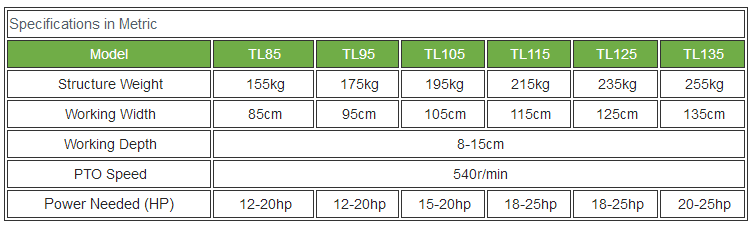 The TL Series Rotary Tiller is sized for the subcompact tractor and designed for seedbed preparation. Ideal for homeowner landscaping, small nurseries, gardens, small hobby farms, or medium-duty residential use. Chain-driven tillers have easy-to-reach tensioners for both manual and automatic adjustments. The chain tightener assembly is resistant to heat, dust, debris and moisture. This reduces maintenance and enhanced the longevity of the chain and sprockets.