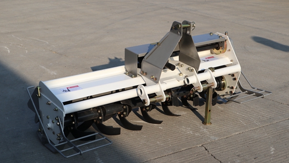 Rotary tiller with through-shaft • Manual 3 point hitch, does not require any use of levers. • Chain drive in oil bath. • Cast iron gearbox with hexagonal through-passing shaft, with reducer