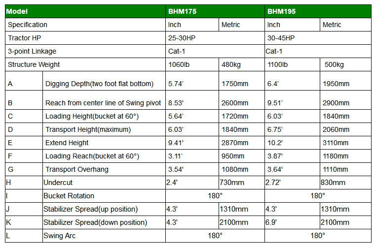 The BHM175 Sub-Compact Tractor backhoe was specifically designed for today’s Sub-Compact Tractors. The VL_BHM5 is a fully intergrated design that assures you of trouble free operation.