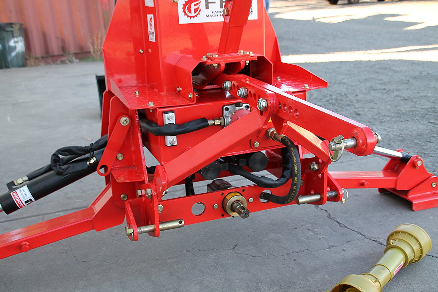 All FHM backhoes attachments are equipped with a intergrated hydraulic pump and tank. No need for hydraulics from your tractor or to hang a pump off your PTO. This design is superior because it ensures the proper flow and pressure are achieved at all PTO speeds. This ensures that the hydraulic valves operate correctly. No need to try and match a backhoe to your tractors hydraulic flow and pressure. The hydraulic pump integrated into the backhoe removes pump hoses that get damage,d are in the way and the insecure and often unsafe pump loosely connected to the tractor’s PTO shaft. Connection with a PTO shaft means a secure safe connection. This design makes connecting the backhoe to the tractor easy. Just back the tractor in, attach the pins and connect the PTO shaft.