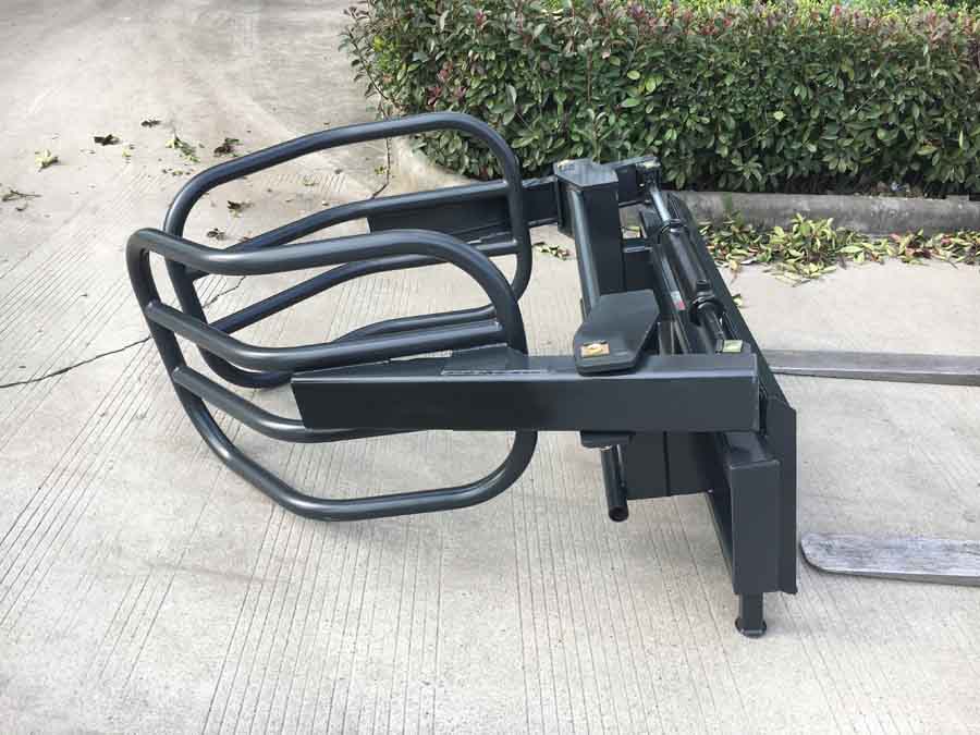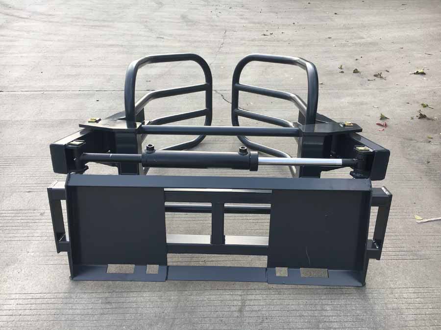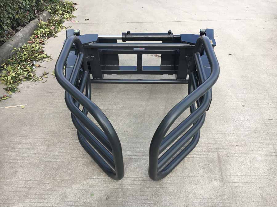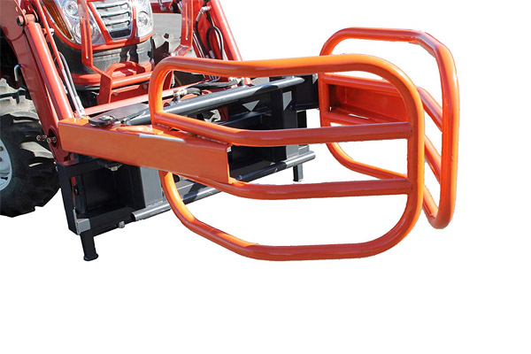 FH-BG130 bale grabber with universal quick release hitch will fit front end loaders or skid steers with the universal hitch. The ideal tool to handle loading and movement of round hay bales or silage bags. This tool minimizes damage to bales and allows the bales to be stacked better.