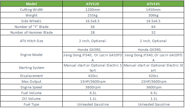 3. Two different blade options are available for the AT Flail Mower,Y blade and