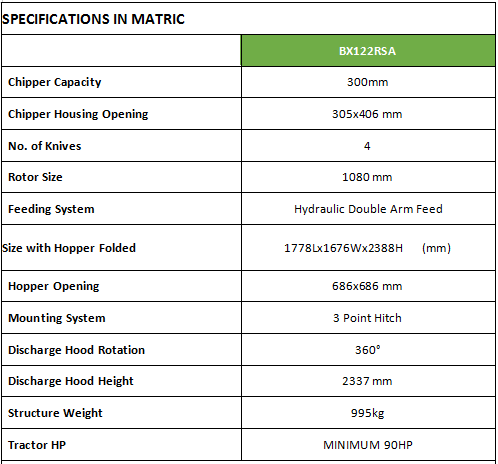Farmer Helper BX122RSA wood chipper with double arm with long tail.