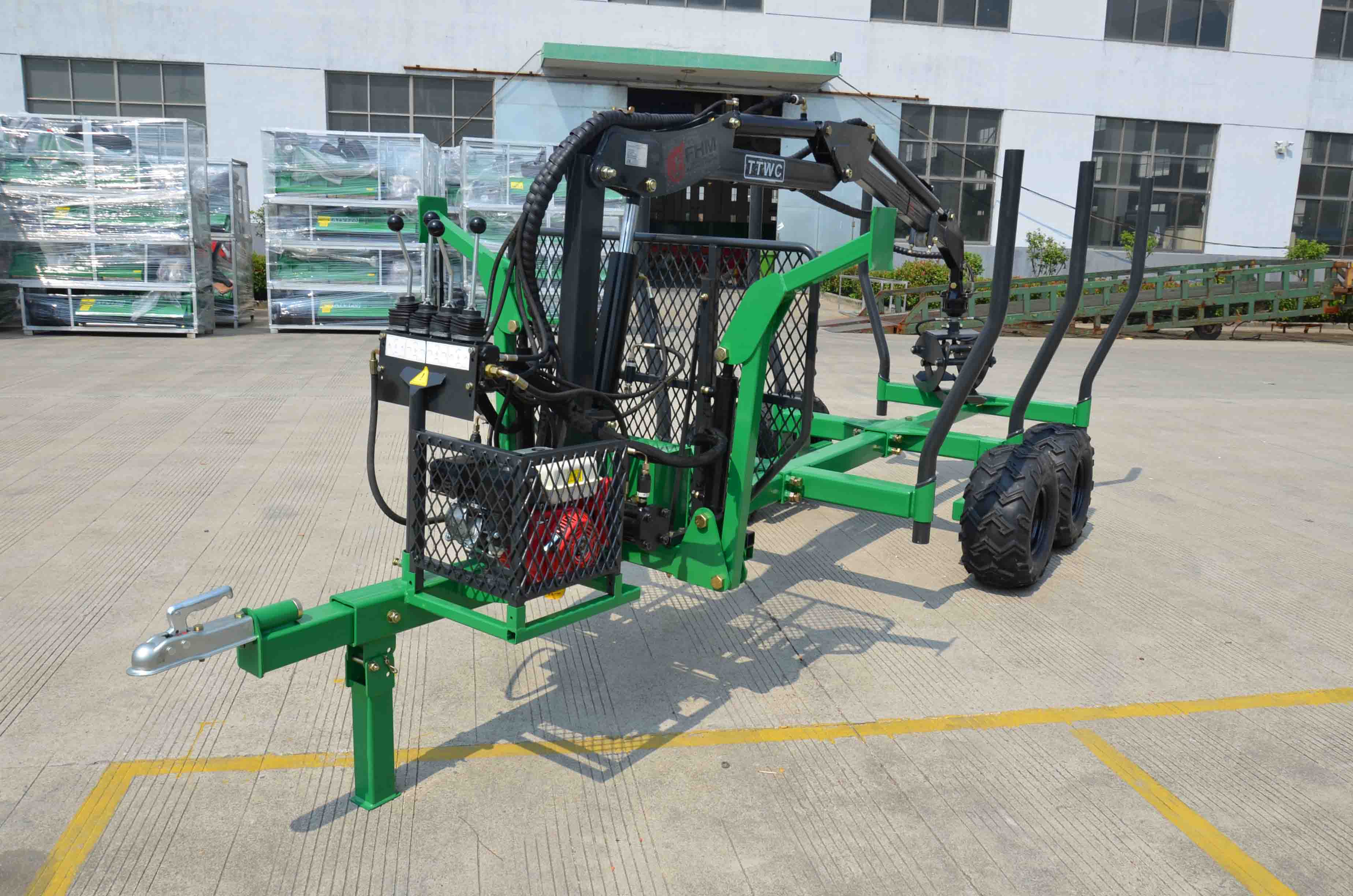 The LOG LOADING trailer is hydraulically supported.